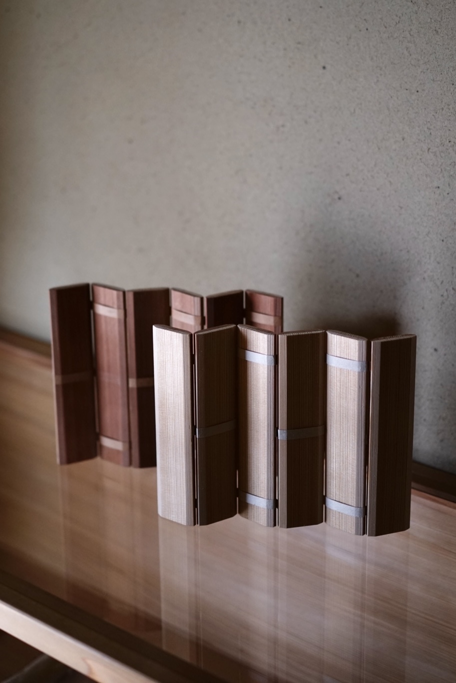 ひとつの木の中に存在するその紅白の色合いをいかした六曲の小さな屏風です。