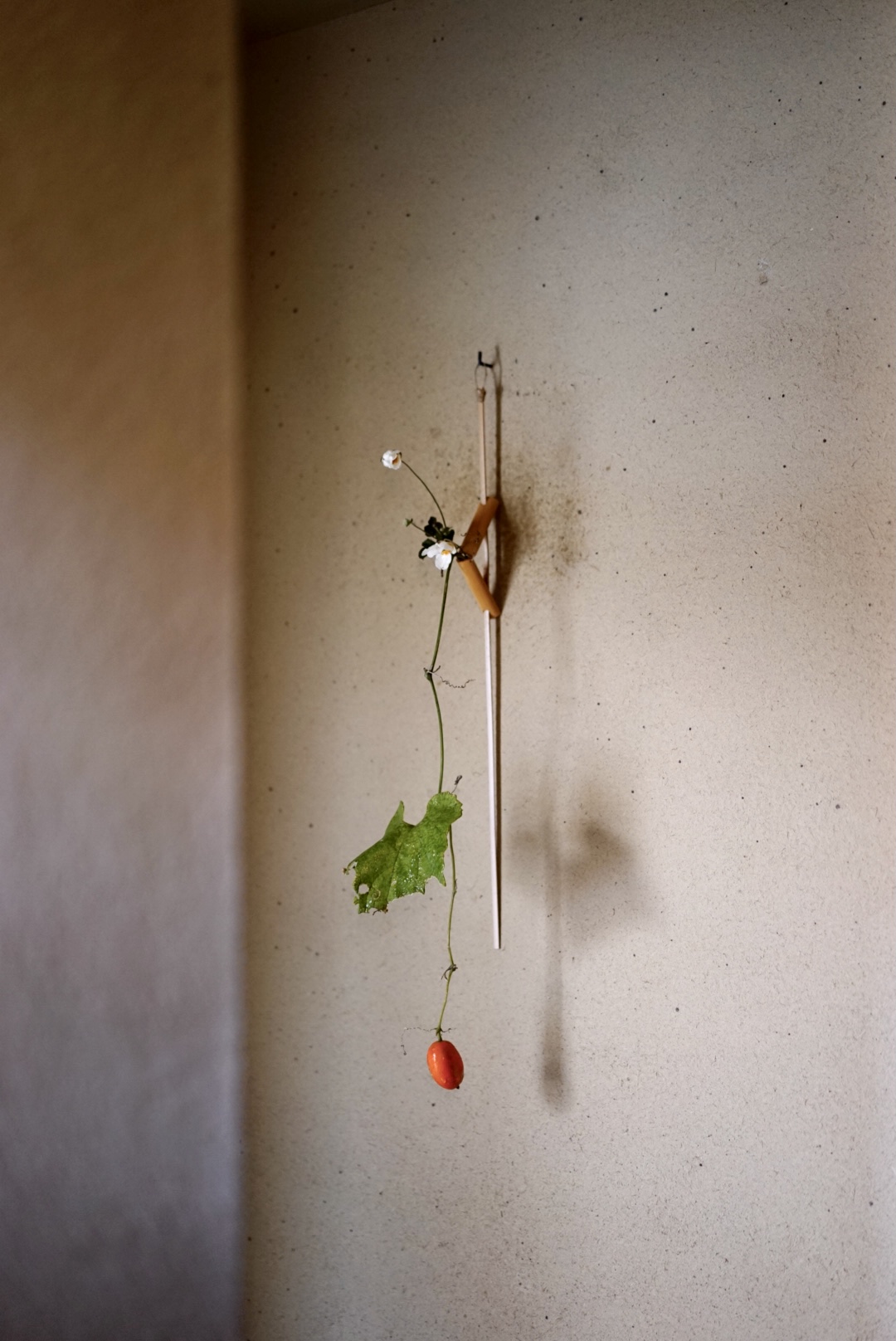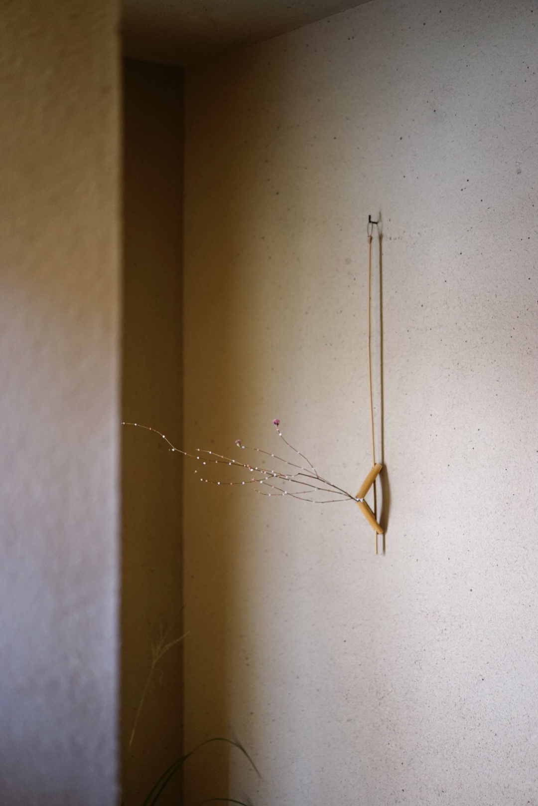 囲炉裏の上に吊るされた自在鉤が鍋や釜の高さを調整するように、「尺取」も花の配置を空間に応じて変えることができます。